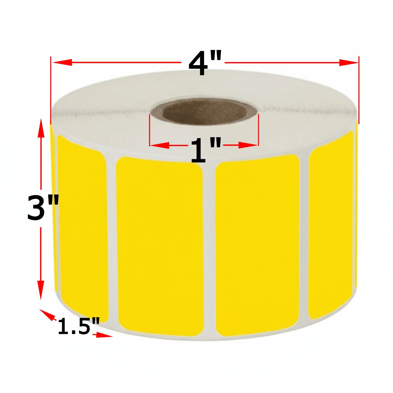 Width 3", Length 1.5", Yellow Direct Thermal Labels, Ribbon NOT required, Permanent Adhesive, 1" core, Perforated. Engineered to endure harsh manufacturing and industrial environments.
